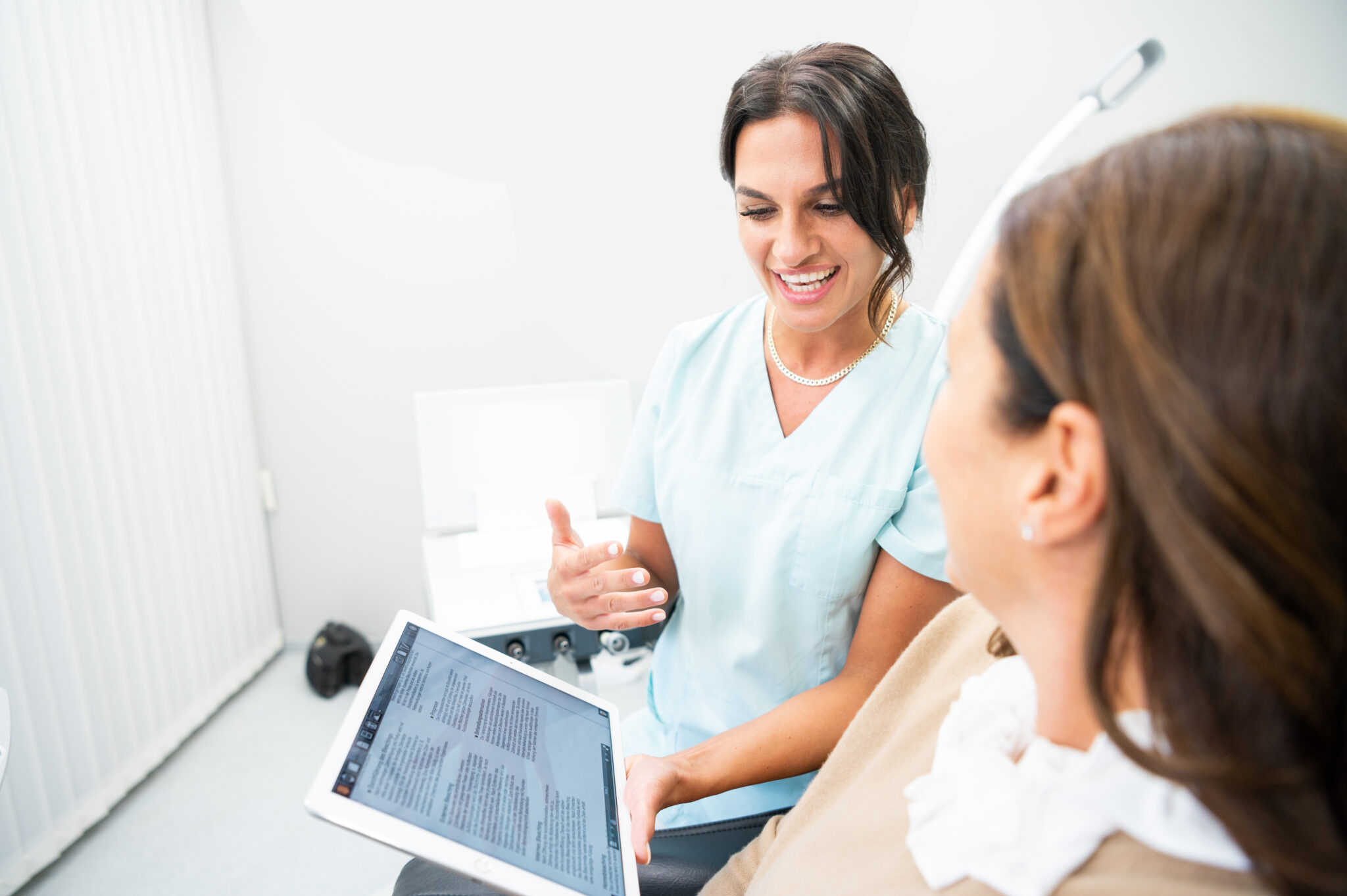 Um eine Behandlung so einfach, verständlich und sensibel wie möglich zu erklären, nutzen wir digitale Medien im persönlichen Beratungsgespräch. Anhand von Bildern, Videos und erklärenden Illustrationen besprechen wir am iPad ausführlich die Ausgangslage und die geplante Behandlung. Ein weiterer Vorteil dabei ist, dass wir unseren Patienten die besprochenen Inhalte im Anschluss an die Beratung auf einem rechtssicheren Weg per E-Mail zukommen lassen.